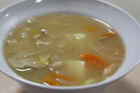 9月4日(木)、給食のメニューはご飯、豚汁、春巻きでした。豚汁は、具材が一度にたくさん摂れ、栄養バランスが良いため、定食屋などよく目にするメニューです。豚汁は日本人のソウルフードともいえるお味噌汁で、お肉も野菜も摂れる健康にいいです。豚汁の温かさによって体温が上がり、代謝が上がることでエネルギー消費も活発になります。定時制の生徒には、完全栄養バランス食です。調理員の皆さん、ありがとうございました。