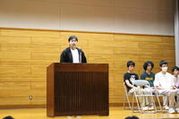 9月29日(月)、生徒会役員離任式・認証式が行われました。離任式では、旧生徒会長がこれまでの生徒会活動について感謝の言葉を伝えました。認証式では、新たに役員となった7名を代表して、新生徒会長が全校生徒の前で力強い決意を述べました。生徒会役員を離任する生徒は1年間お疲れ様でした。そして生徒会役員に就任する生徒はこれからよろしくお願いします。