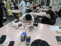 9月22日(月)、中学生とその保護者を対象に学校見学会が行われました。本校定時制の概要説明後、電子機械科実習棟、電気科実習棟をまわり、実際に学科で行われている実習の様子を見学していただきました。見学に来られた方々は、4年生と実習担当の先生方から実習の内容についての説明を興味津々で聞いておりました。